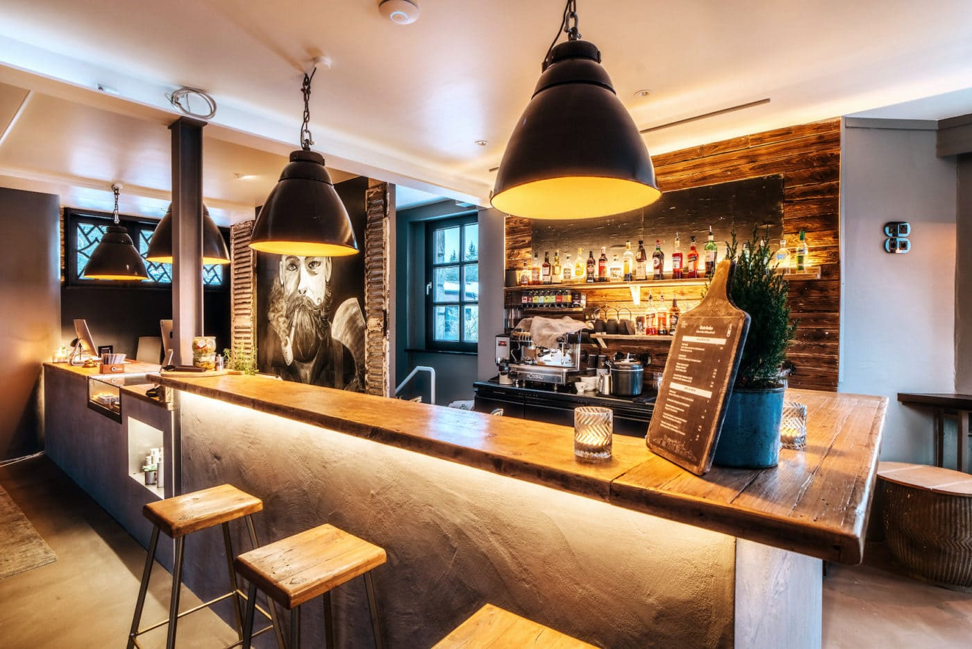 But that doesn’t mean guests have to do without great service. Each of the 55 rooms, including six suites, is individually designed. From budget rooms to executive suites with freestanding bathtubs, every room has been furnished in its own style. Industrial design meets a feel-good vibe. Thanks to the good taste and energy of interior decorator, carpenter and creative freethinker, Tatjana Westphal. The whole hotel is garnished with one-off objects found in antiques markets and designer furniture with its own story to tell.