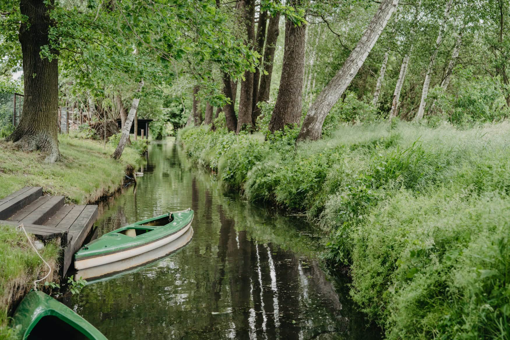 Alle, die eher traditionell unterwegs sind, buchen sich stattdessen auf einen urtümlichen Spreewaldkahn ein. Das Fortbewegungsmittel ist immerhin Teil des immateriellen Kulturerbes in Deutschland. Fast ohne einen Mucks gleiten die hölzernen Boote durchs Wasser, kundig gesteuert von einem Kahnführer. Die geben während der Fahrt Einblicke in die Kultur und Geschichte des Spreewalds. Besonders im Sommer, wenn die dichten, grünen Bäume ein schattig-kühlendes Dach über den Kanälen bilden, ist eine Tour auf dem Kahn ein Muss.